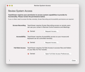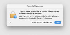 首次在 Mac 上啟動 Team Viewer 時,您可能會看到下列對話方塊: