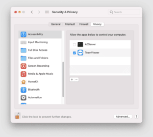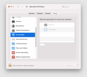 选中 teamViewer 以授予访问的框: